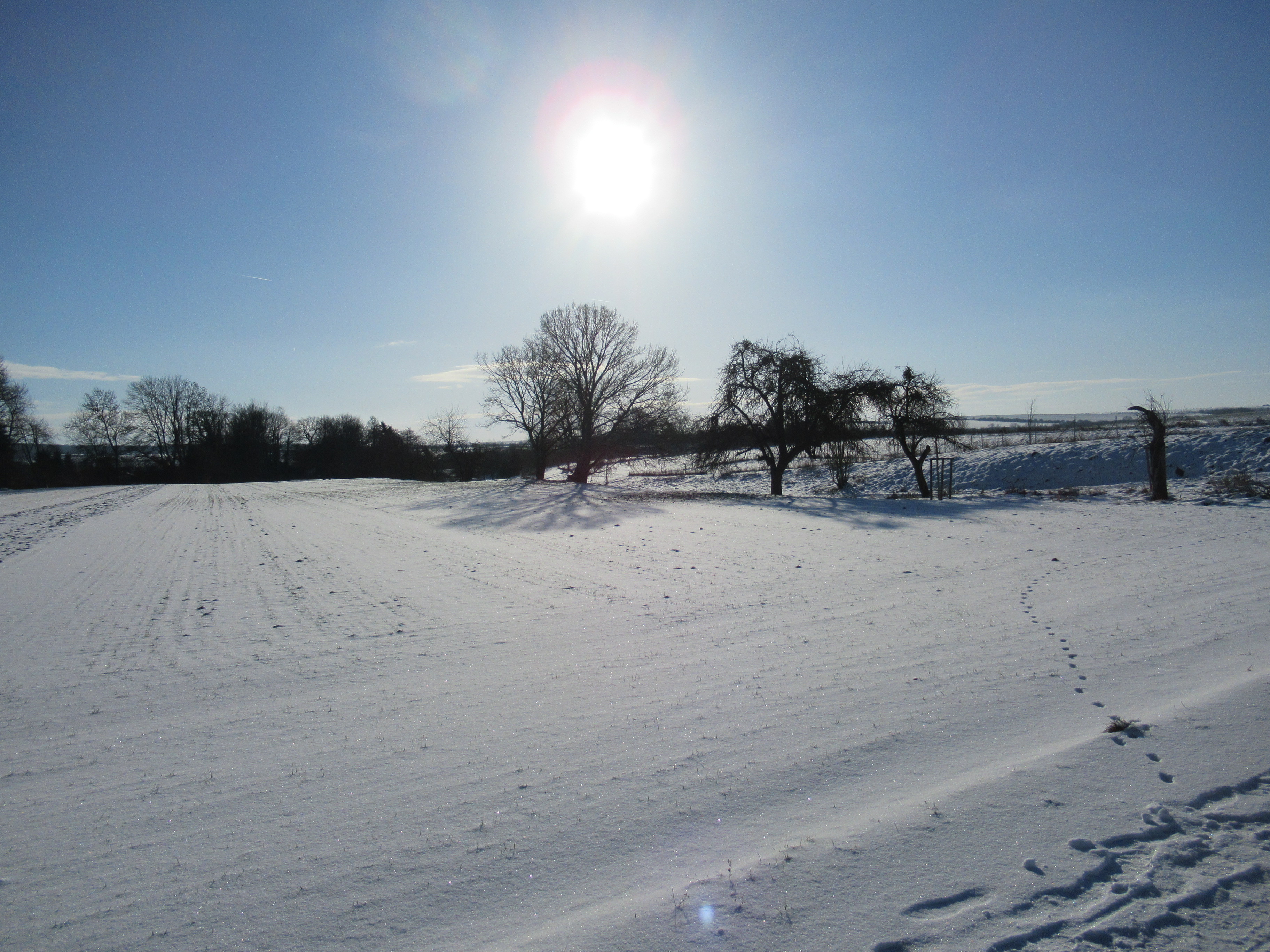 Klare Winterluft, strahlend blauer Himmel und eine untergehende Sonne haben mich vorhin verzaubert 🙂