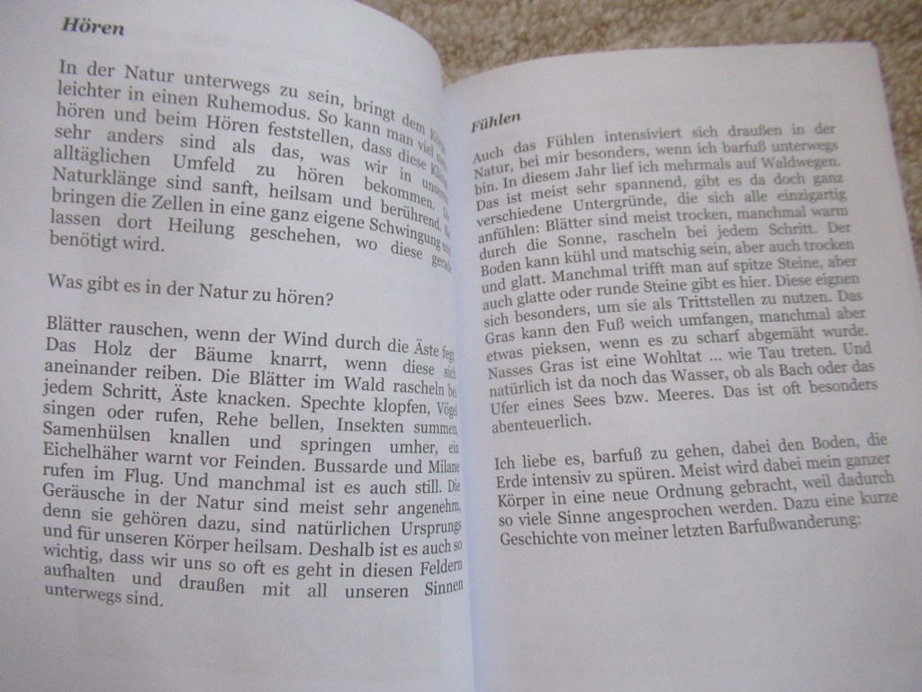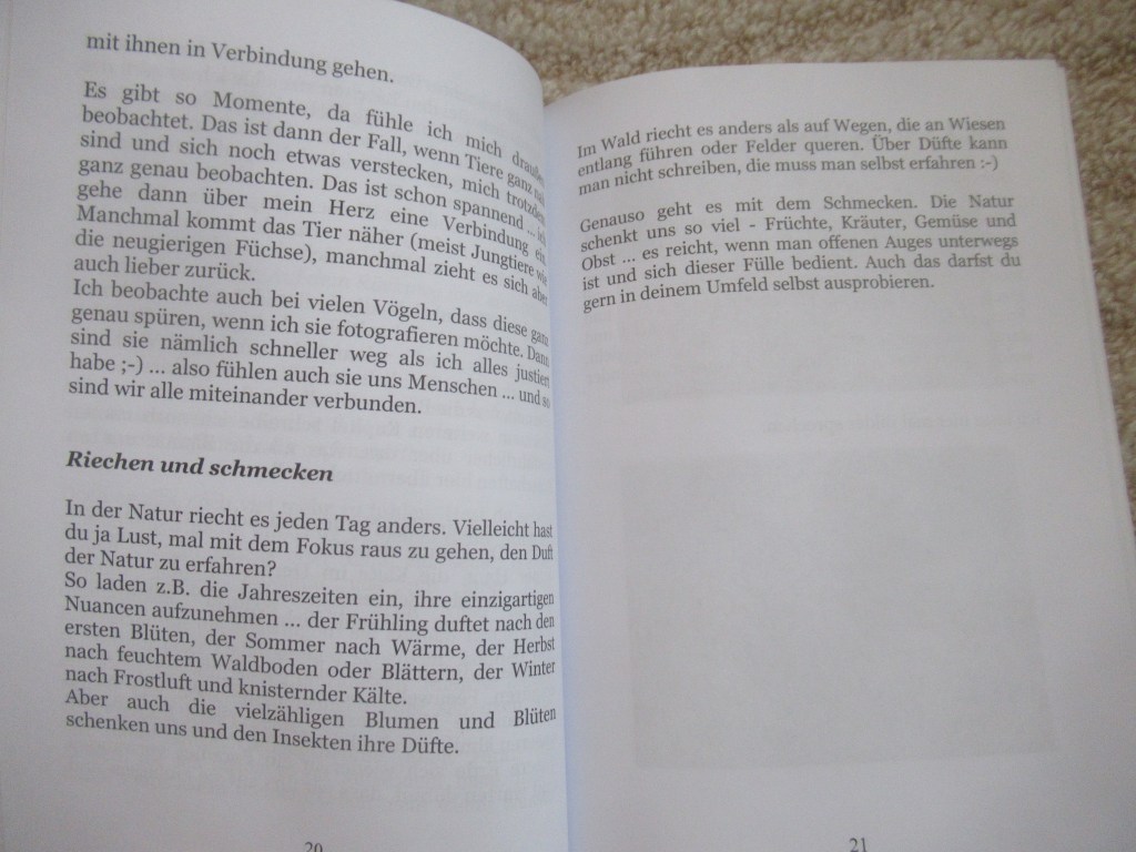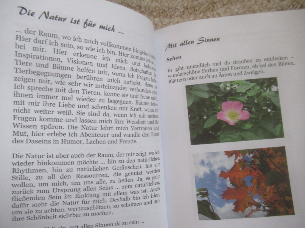 „Natur erleben“ ist mein zweites Buch über meine Naturerfahrungen und -begegnungen. Doch es ist noch viel mehr – es möchte dich einladen und daran erinnern, dass die Natur auch für dich da ist! Es enthält wunderschöne Fotos, spiegelt zauberhafte Momente wieder und beleuchtet viele Facetten der Natur, ja unserer Erde und all ihrer Bewohner 🙂