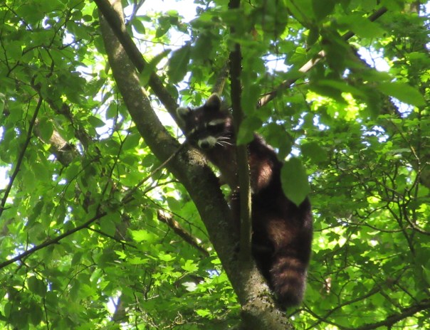 Ich lauschte, fühlte … begegnete Wesen … der Wind schickte mir jedesmal einen Gruß, schickte Blätter zur Erde und rauschte durch die Äste. Tiere zeigten sich: ein Reh sprang vorbei, ein Waschbär beobachtete mich von seinem Platz hoch oben auf dem Baum.