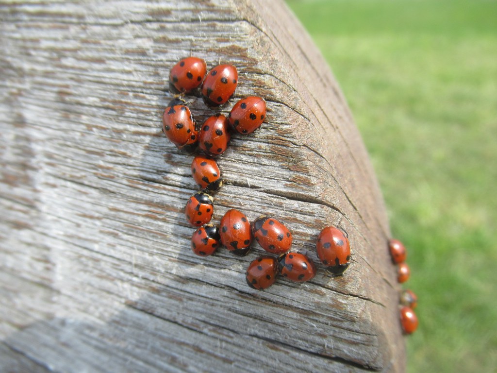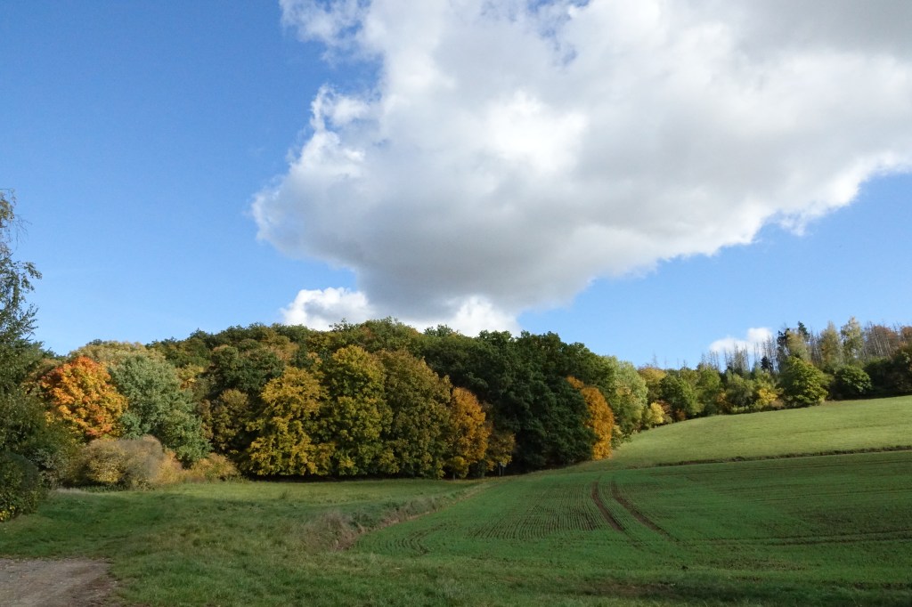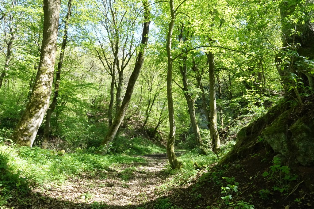 Eine Fahrradtour brachte mich später auf den Karstwanderweg. So fand ich dieses kleine Wäldchen mit dem Höhlenportal. Von da an erwanderte ich diese Gegend, mal barfuß, mal über die Wiesen oder durch den Wald. Meist war die Gedankenbank mein Ziel, die mich so manches Mal überraschte, oft mit viel Wind, mehrmals mit Unmengen von Marienkäfern und immer mit wunderschönen Aus- und Weitsichten.