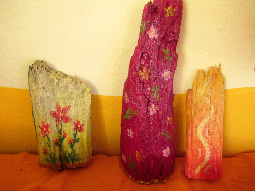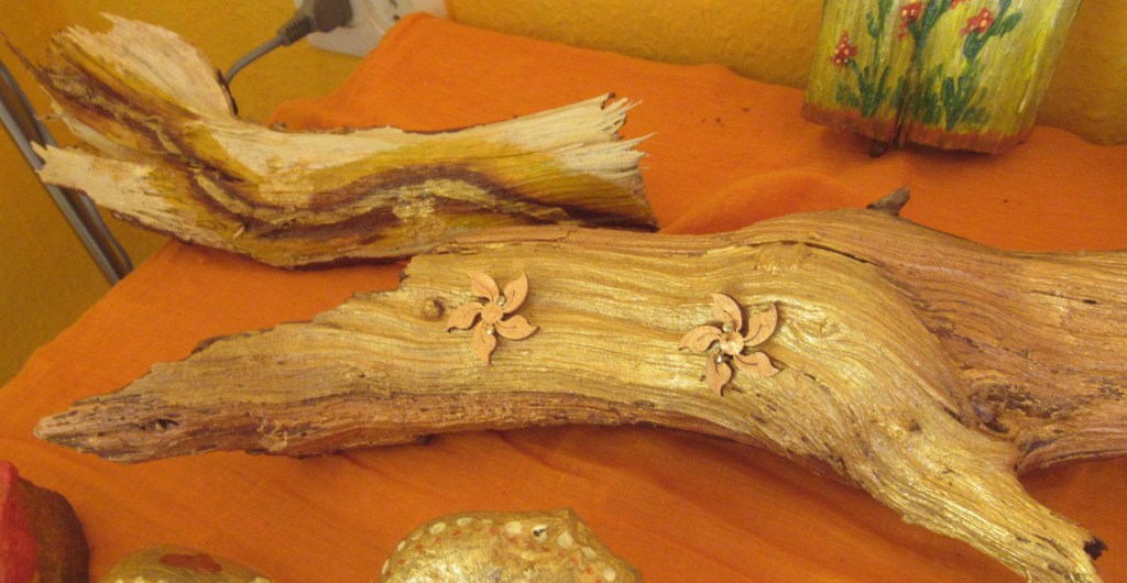 Für meine Naturkunst finde ich immer wieder besondere Stücke in der Natur (Holz, Steine) und zaubere damit das, was sich mir innerlich zeigt. So entstehen z.B. Seelenwurzeln, Zauberwurzeln oder Schutzsteine. Hier ein paar Beispiele:
